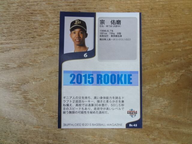 2015 BBM オリックスバッファローズ 宗 佑磨 RC ( ルーキーカード ) No. Bs 45