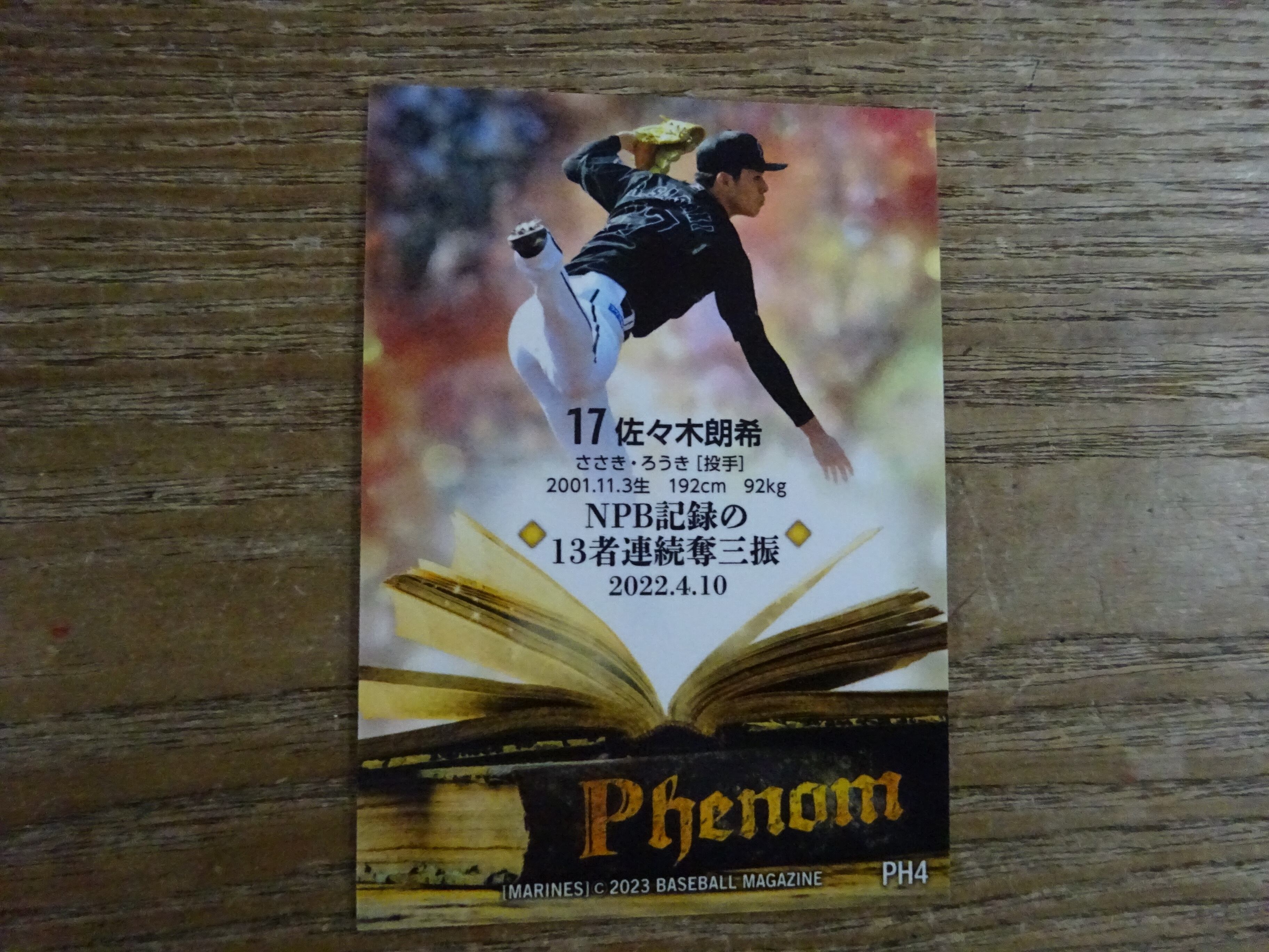 2023 BBM 千葉ロッテマリーンズ 佐々木朗希 インサートカード「13者連続奪三振」 フェノム ( PH 4 )