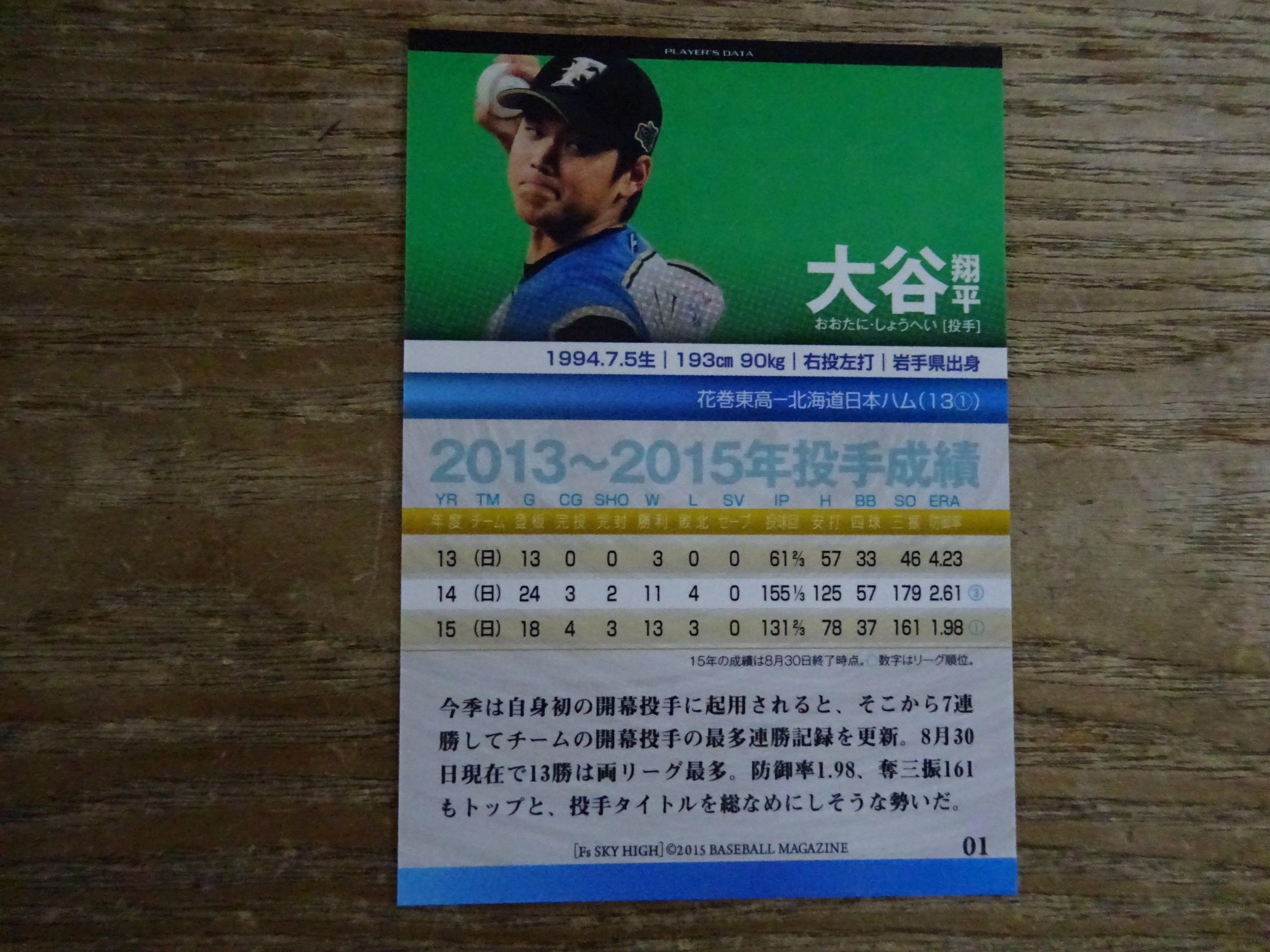 2015 BBM Fs SKY HIGH 北海道日本ハム ファイターズ 大谷翔平 No. 01