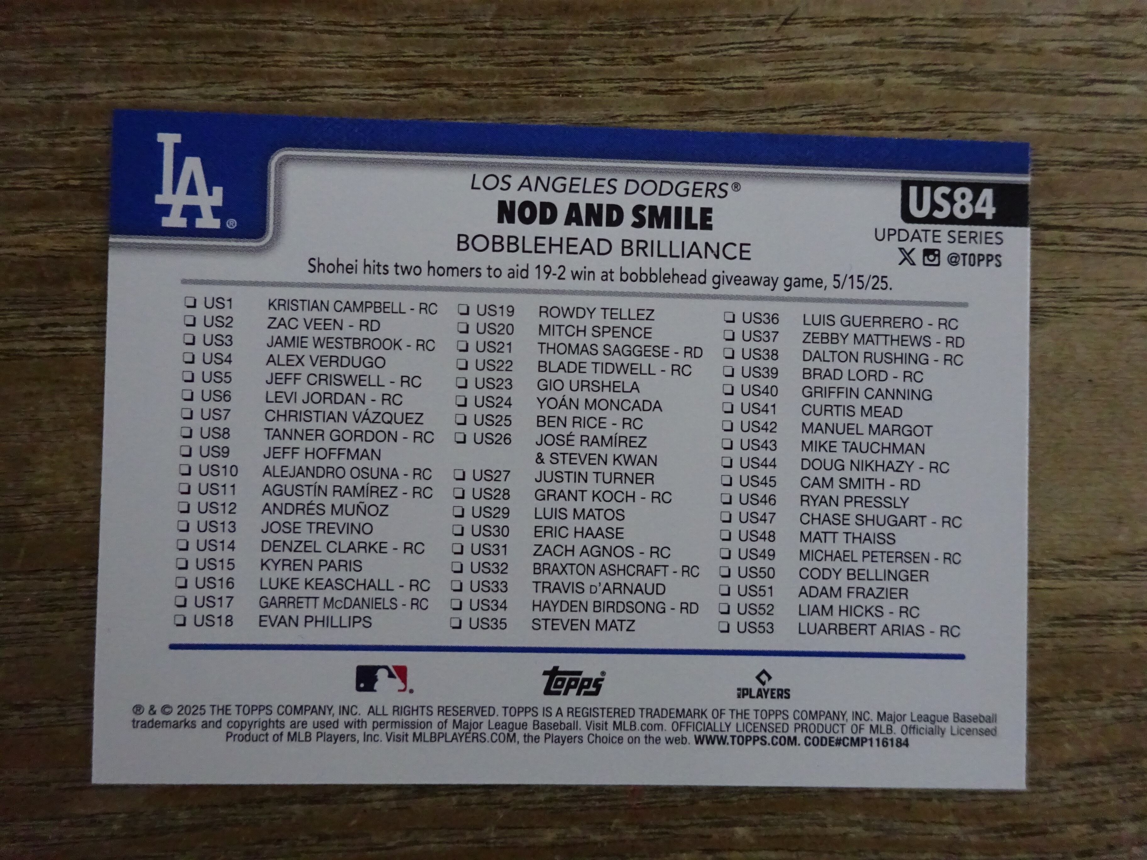 2025 TOPPS UPDATE SERIES ロサンゼルス・ドジャース 大谷翔平 No. US 84