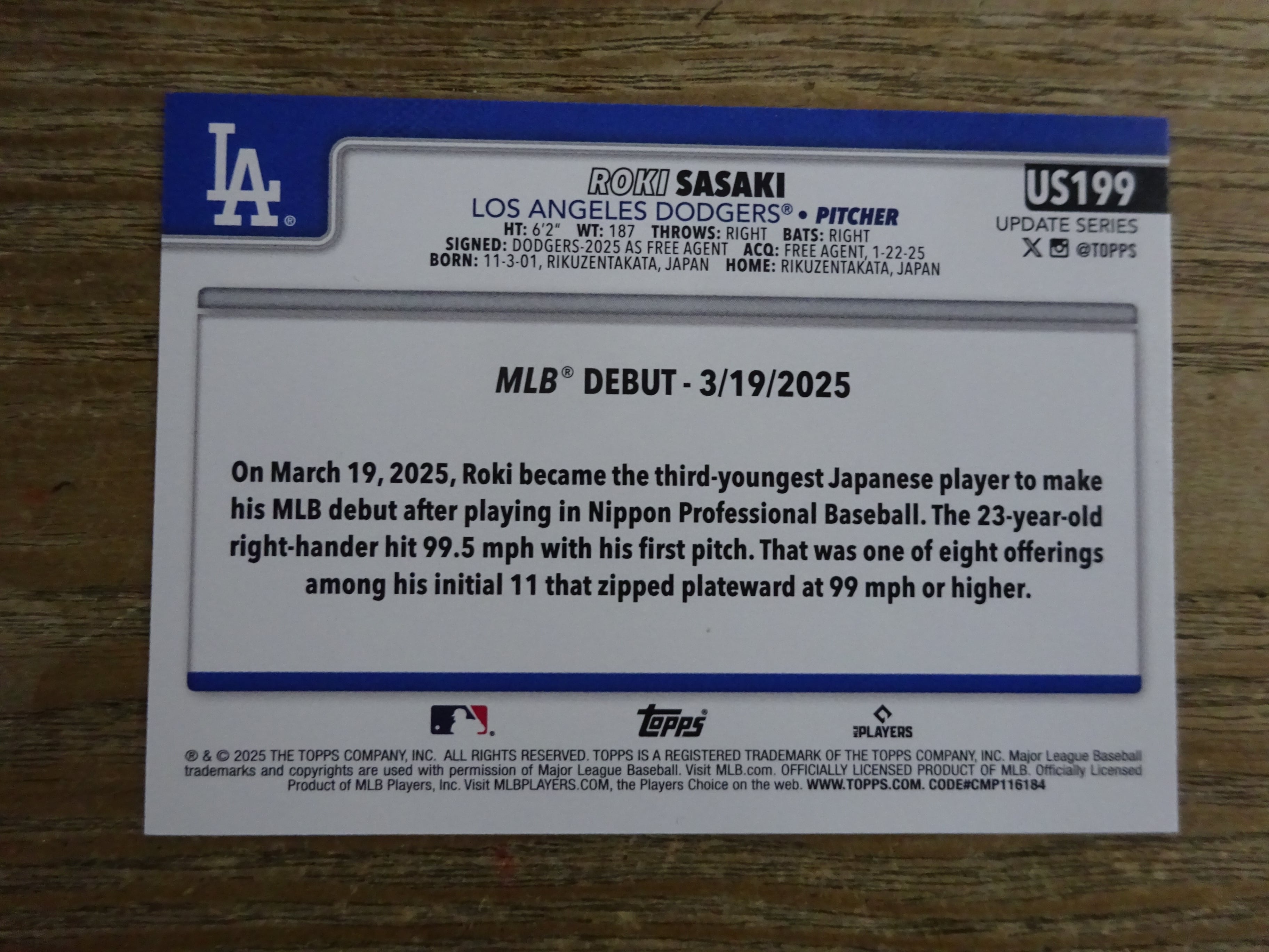 2025 TOPPS UPDATE SERIES ロサンゼルス・ドジャース 佐々木朗希 RC ( ルーキーカード ) No. US 199
