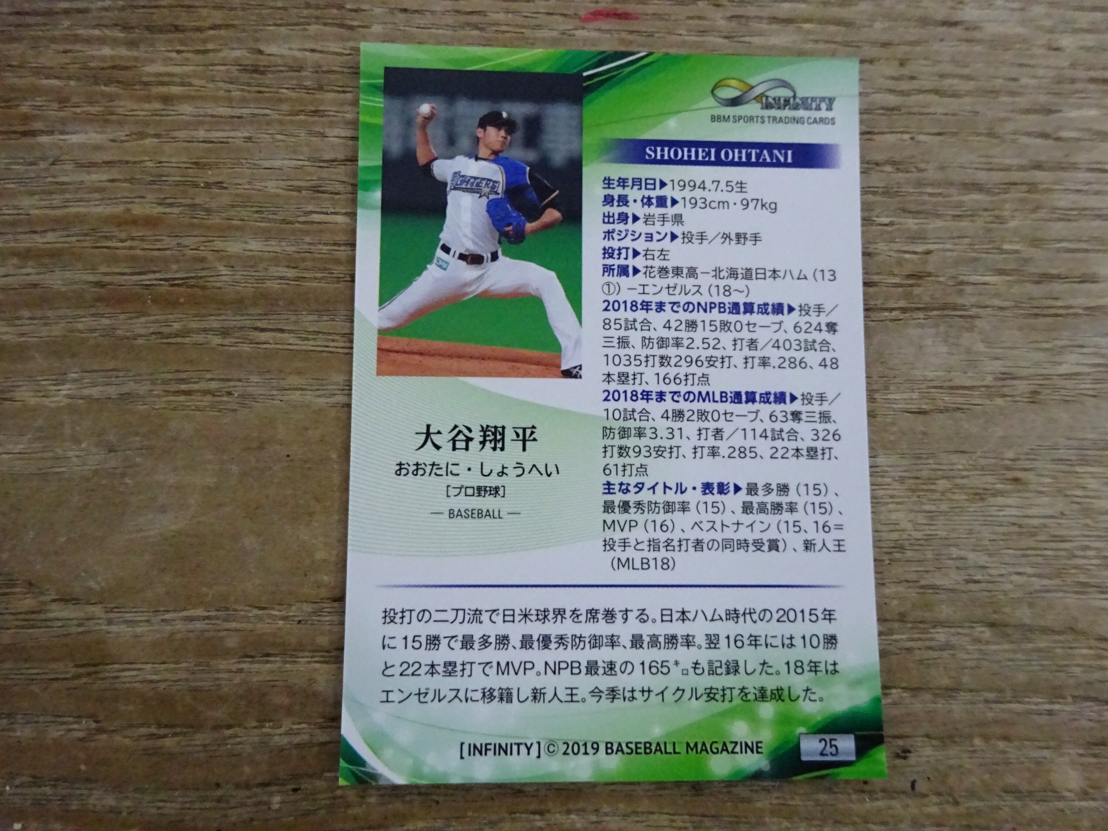 大谷翔平 2019 BBM INFINITY