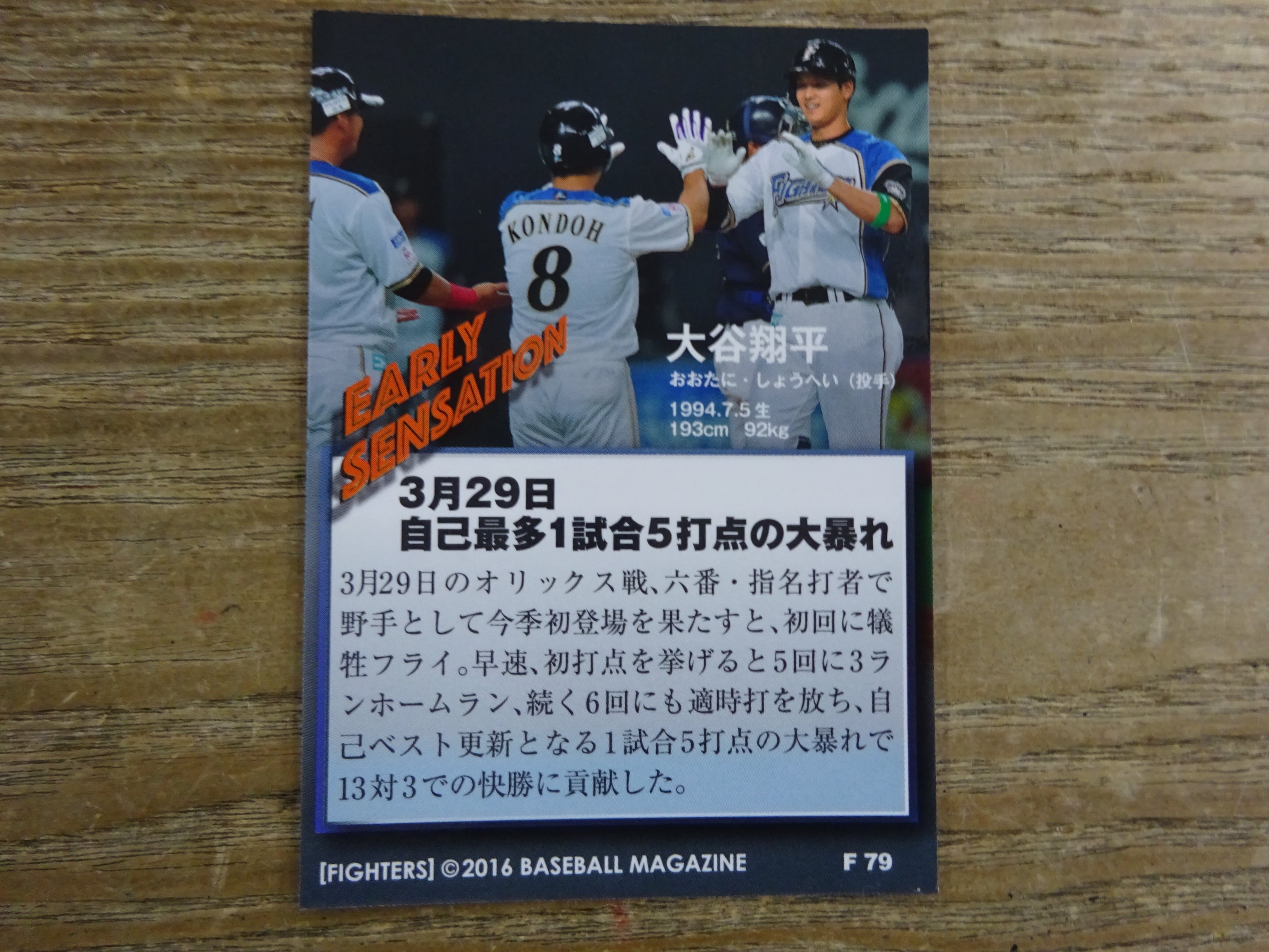 2016 BBM 北海道日本ハムファイターズ 大谷翔平 EARLY SENSATION 3月29日 自己最多1試合5打点の大暴れ No. F79