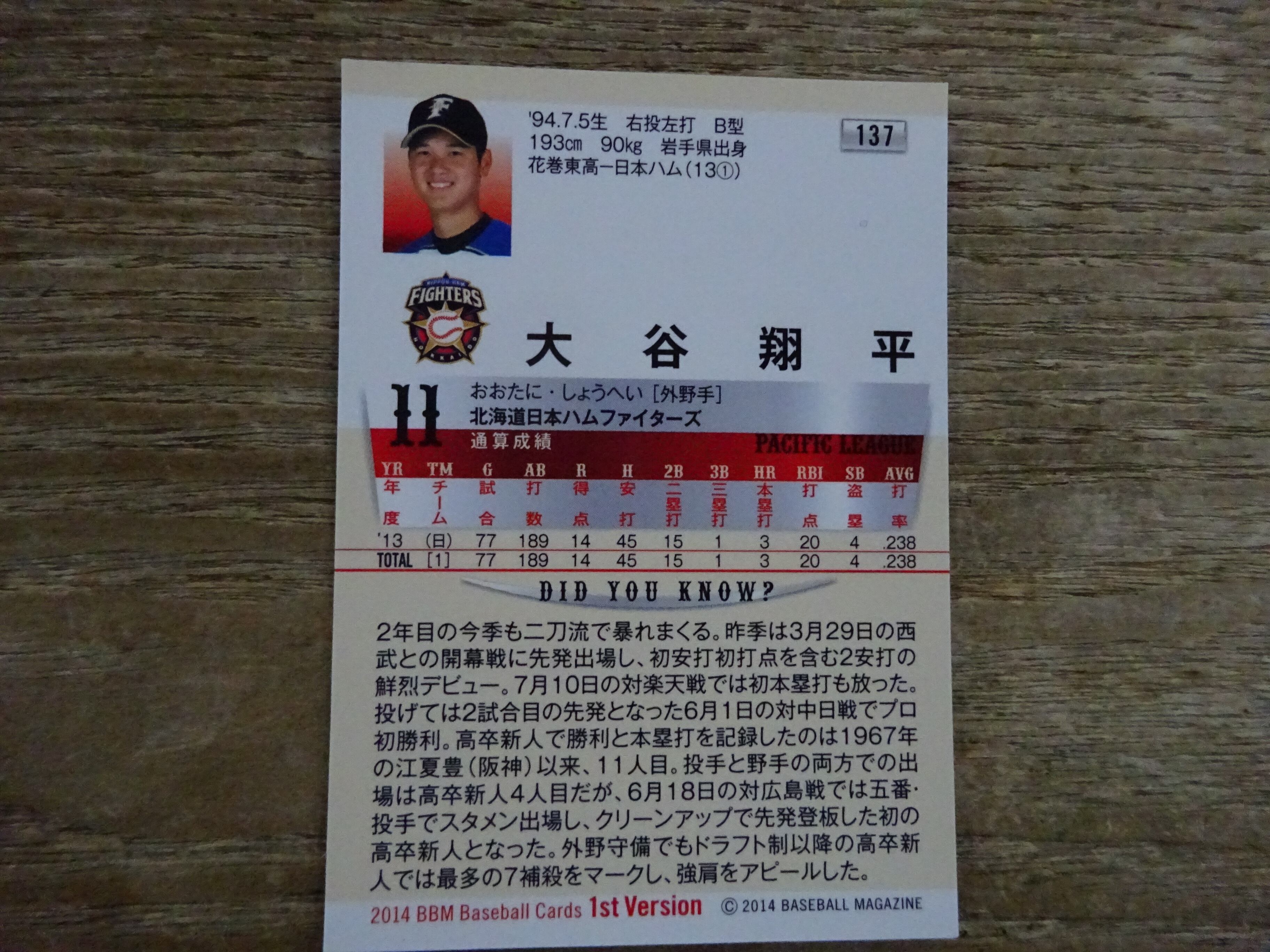 2014 BBM 1st バージョン 北海道日本ハムファイターズ 大谷翔平【打者】 No. 137