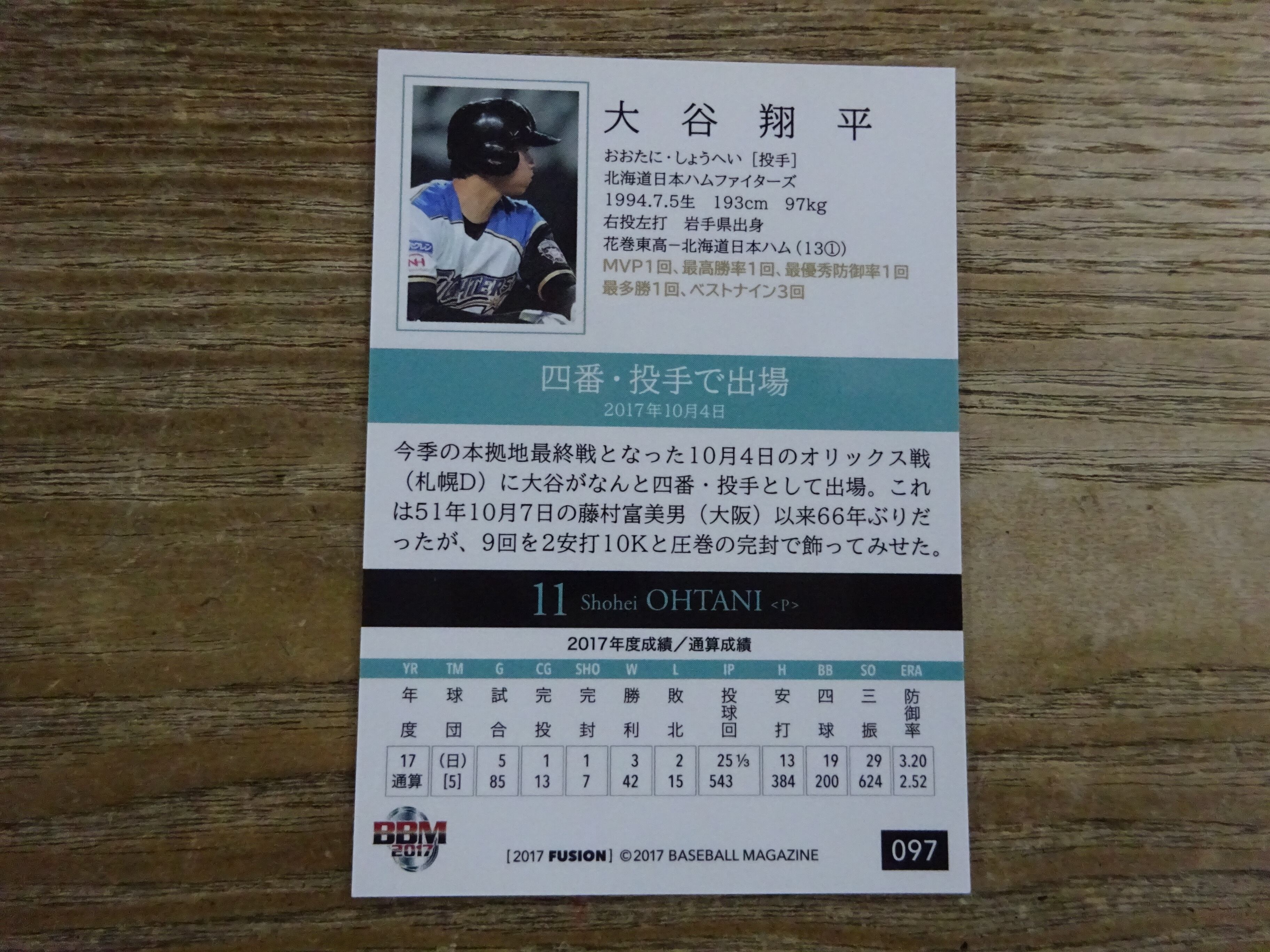 大谷翔平 シークレット版 2017 BBM FUSION