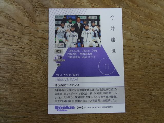 2017 BBM スポーツカードマガジン 2017年3月号 No.121 埼玉西武ライオンズ 今井達也 オリジナル付録カード No.394 RC(ルーキーカード) No.028