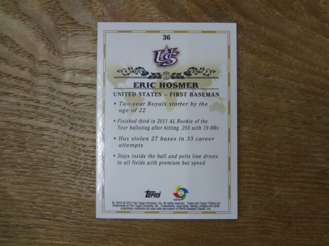 2013 TOPPS TRIBUTE カンザスシティ・ロイヤルズ ERIC HOSMER(エリック・ホズマー) No.36 WBCアメリカ代表