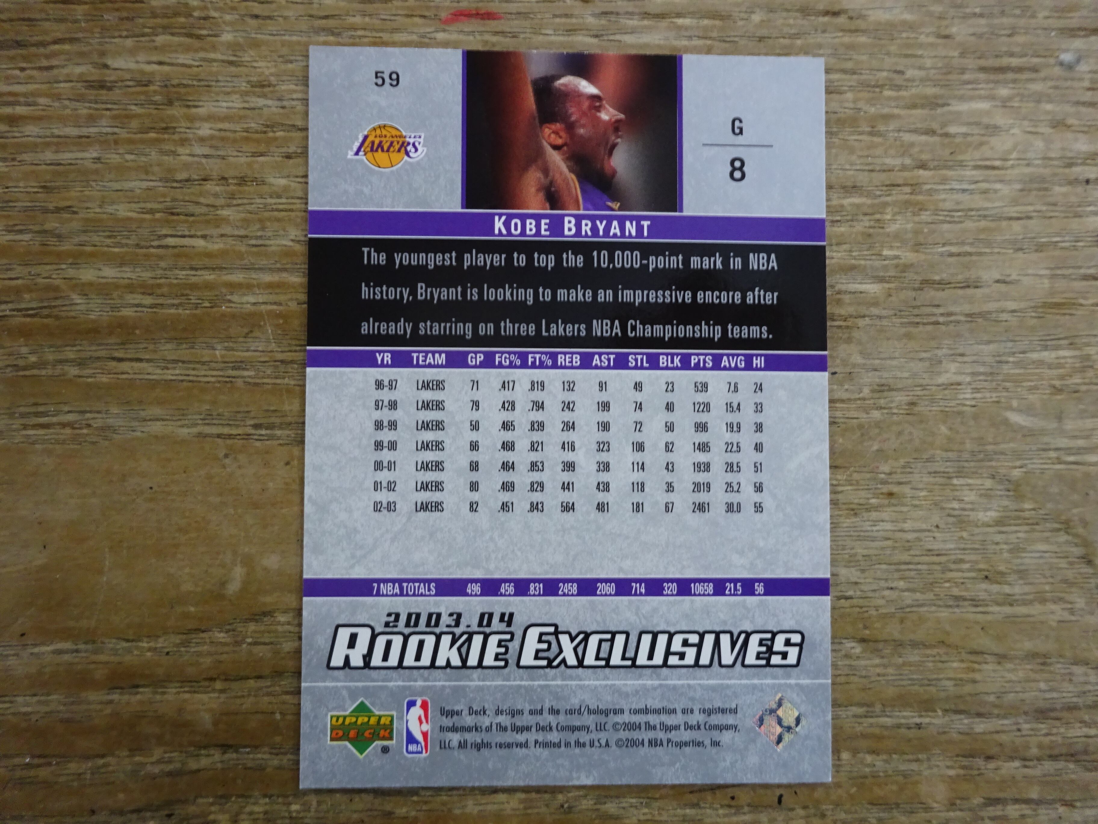 KOBE BRYANT 2003-2004 UPPER DECK ROOKIE EXCLUSIVES #59