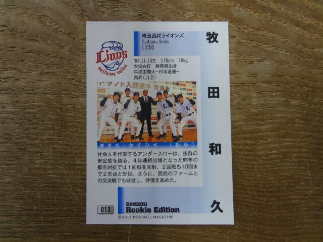 2011 BBM ルーキーエディション 埼玉西武ライオンズ 牧田和久 RC(ルーキーカード) No.013